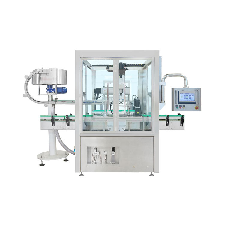 Kecepatan pemberian botol, penutup putar, pemindahan botol, penutup atas dan penutup dapat disesuaikan di layar sentuh untuk menghindari fenomena pembuangan dan pemblokiran botol serta meningkatkan efisiensi kerja; bahan klip botol fleksibel dan cocok untuk sebagian besar bentuk wadah, sehingga menghilangkan fenomena kerusakan botol dan cedera botol; perangkat pemandu mekanis dengan kinerja dan keandalan tinggi memastikan masuknya tutup dengan mulus dan goresan lembut, serta memastikan keakuratan pengambilan dan penempatan tutup.